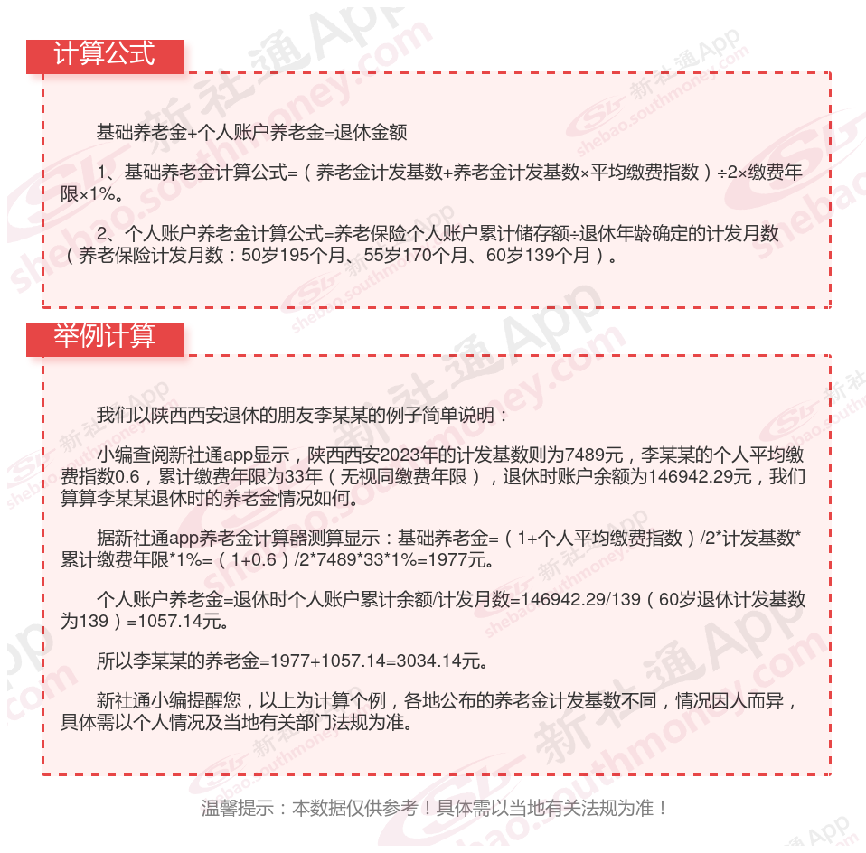 陕西西安养老金计算公式2024年计算方法(在线计算器)