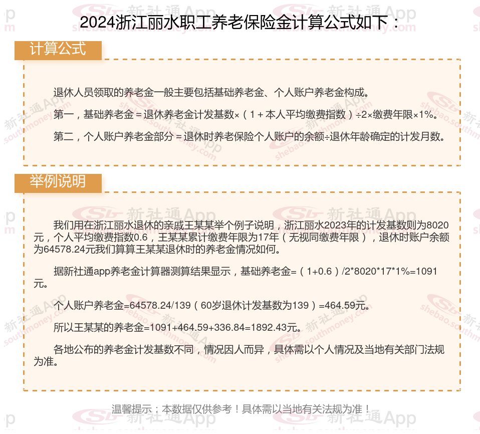 浙江丽水养老金计算公式2024年计算方法(在线计算器)