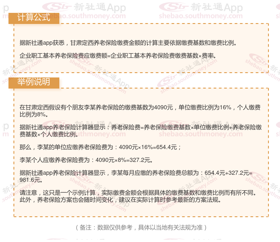 养老保险一个月要交多少钱?甘肃定西缴费基数2023-2024年最新标准(最低)