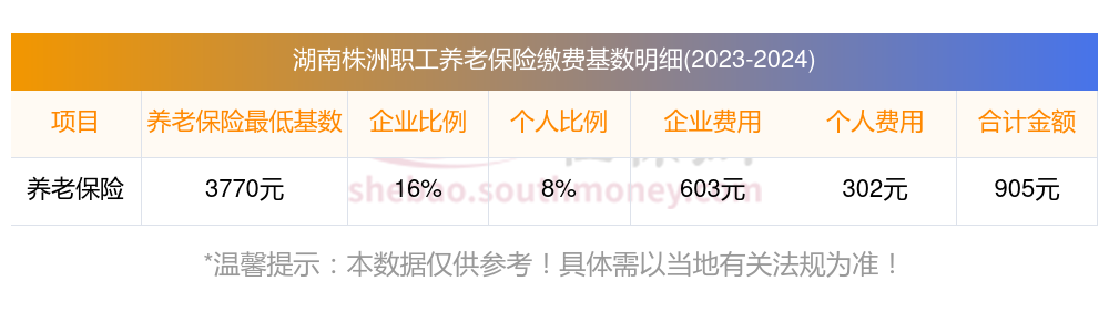 湖南株洲养老保险缴费基数2023-2024最新标准 一个月要交多少钱?