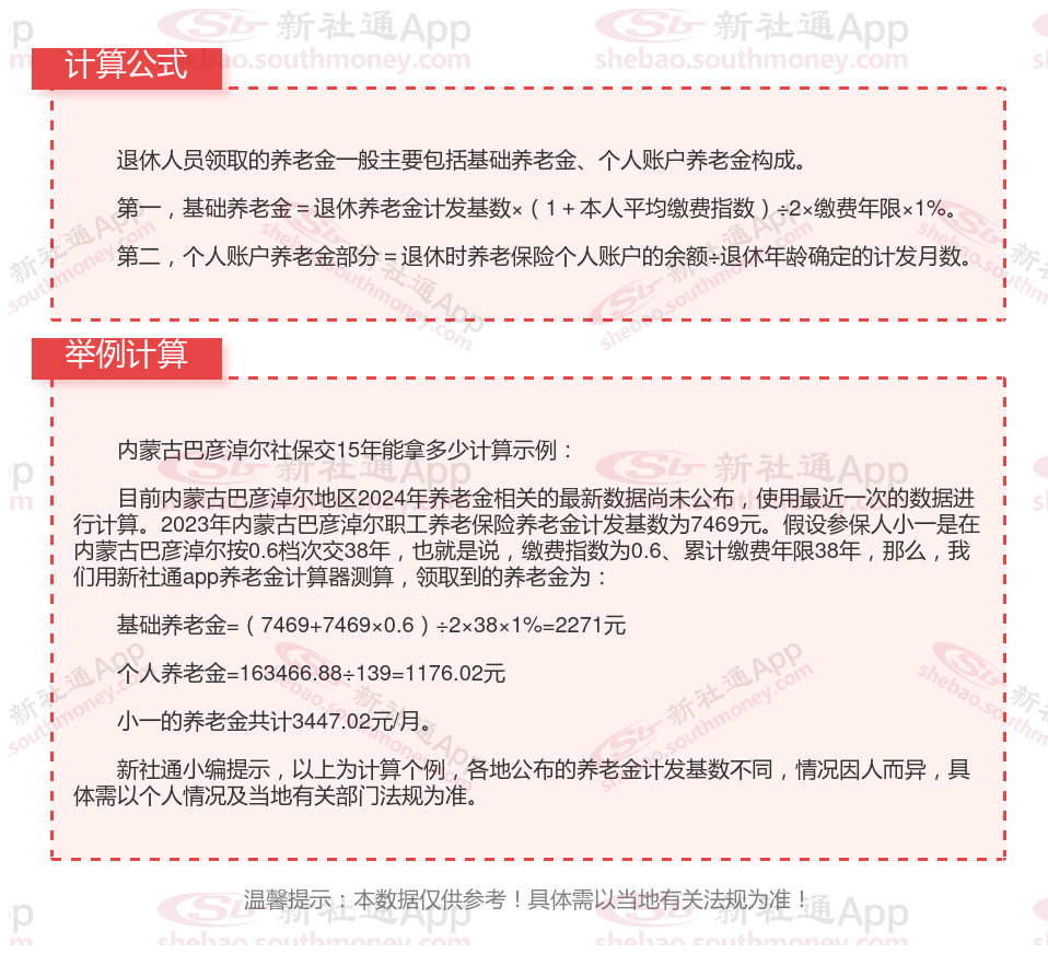 内蒙古巴彦淖尔养老金计算公式2024年最新计算器 社保交满15年能领多少钱?