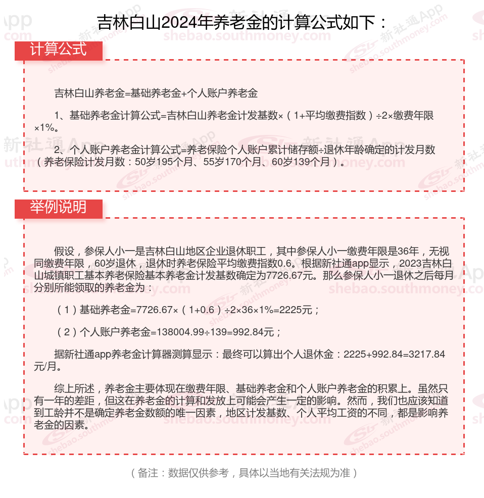 吉林白山养老金计算公式2024年计算方法(在线计算器)