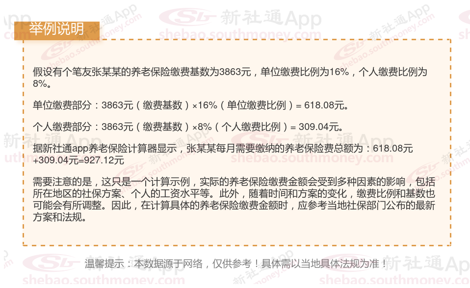 缴费基数下限暂按不低于3863元/月执行。按照单位16%+个人8%的缴费费率,单位和个人养老保险缴费金额分别不低于618.08元/月、不低于309.04元/月。