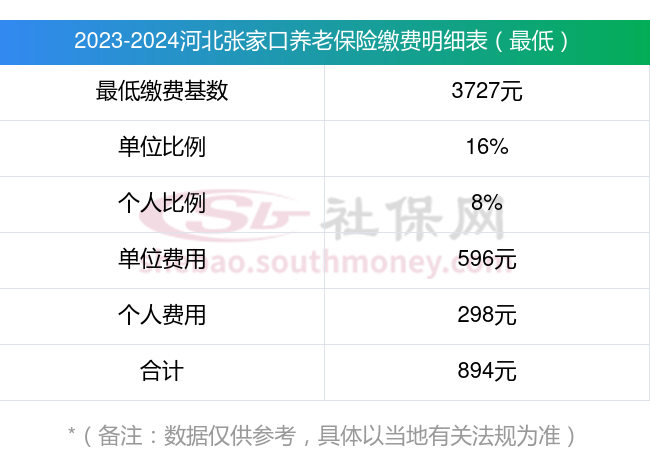 河北张家口养老保险缴费基数2023-2024最新标准如下