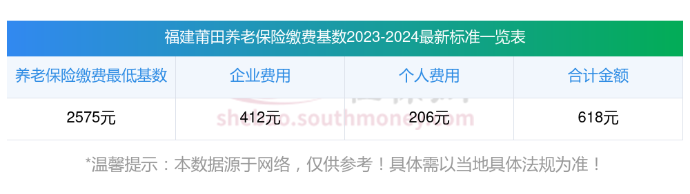 福建莆田养老保险缴费基数2023-2024年最新标准(最低)要交多少钱一个月?