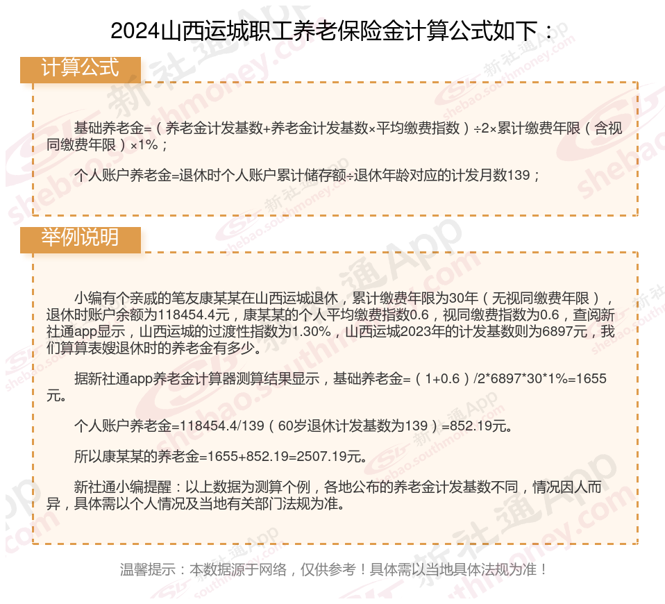 山西运城养老金计算公式2024年最新计算器 社保交满15年能领多少钱?