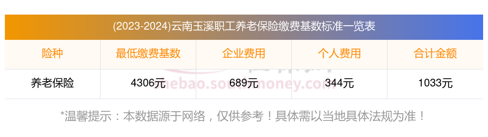 2023-2024年云南玉溪养老保险缴费比例及基数标准(最新)
