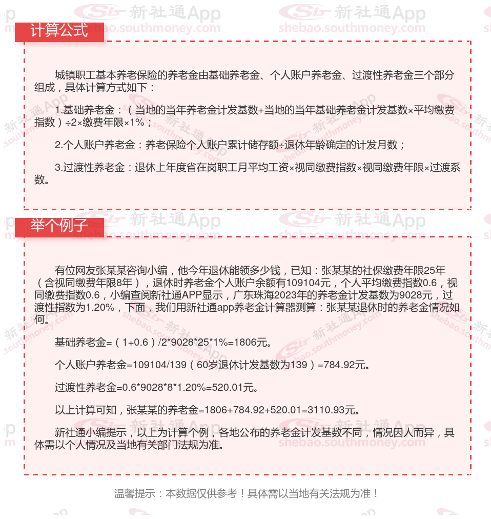 广东珠海养老金计算公式2024年计算方法(在线计算器)