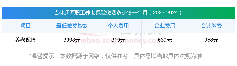 吉林辽源养老保险缴费基数2023-2024年最新标准(最低)要交多少钱一个月?