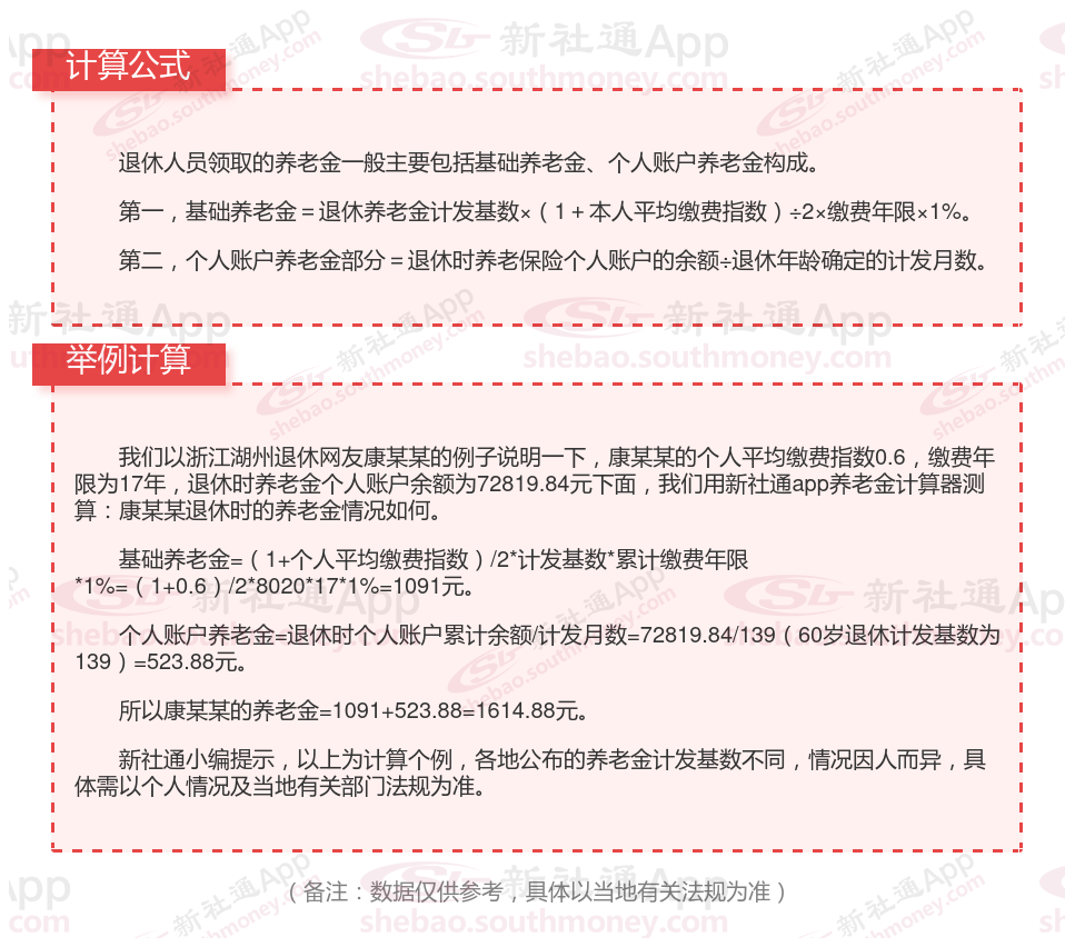 浙江湖州养老金计算公式2024年计算方法(在线计算器)