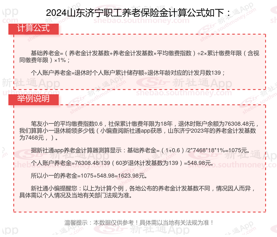 山东济宁养老金计算公式2024年计算方法(在线计算器)
