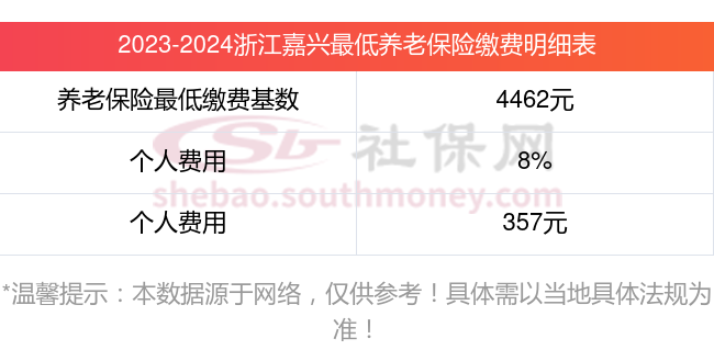 据新社通app获悉,2024年浙江嘉兴养老保险缴费金额的计算公式如下: