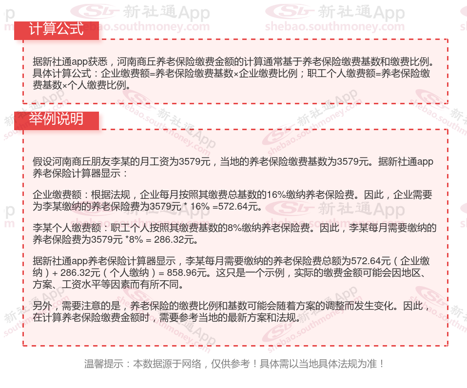 据新社通app获悉,河南商丘职工养老保险缴费金额的计算涉及到企业缴费额和职工个人缴费额两部分。以下是一个基于河南商丘的职工养老保险缴费金额计算示例: