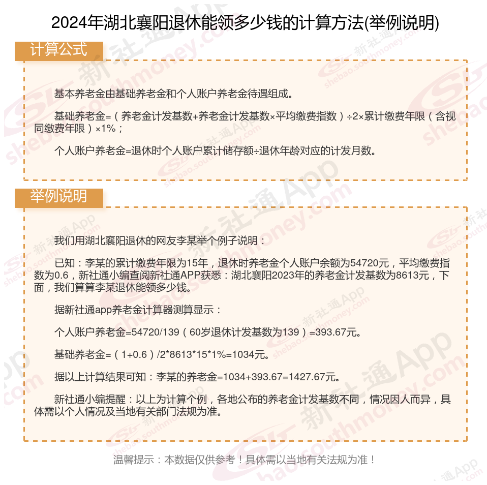 湖北襄阳养老金计算公式2024年计算方法(在线计算器)