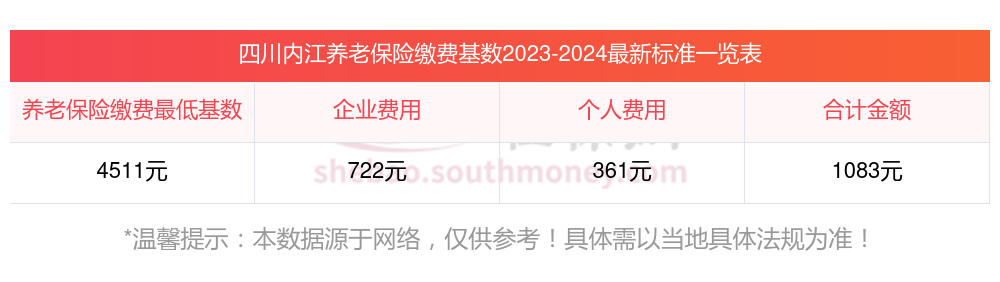 据新社通app显示,四川内江养老保险缴费基数2023-2024年最新标准如下: