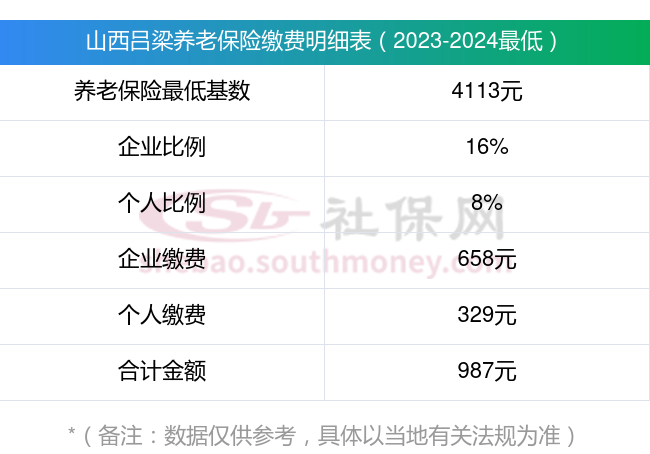 山西吕梁养老保险缴费基数2023-2024最新标准,一个月要交多少钱?