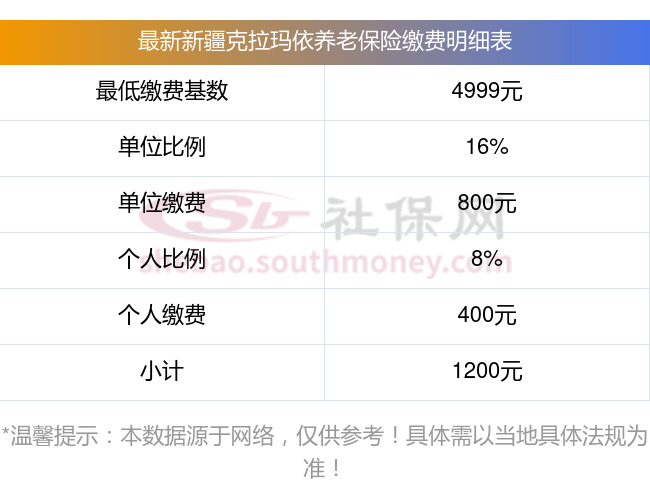 新疆克拉玛依养老保险缴费基数2023-2024年最新标准(最低)