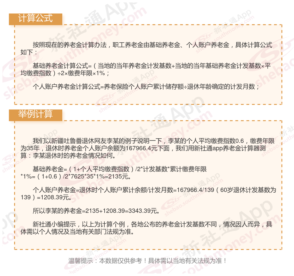 新疆吐鲁番社保退休能领多少钱?(在线计算举例说明)