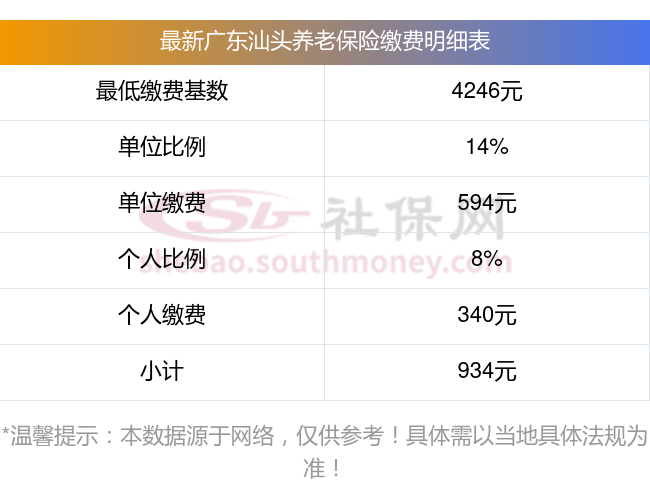 据新社通app获悉,广东汕头养老保险缴费金额的计算涉及多个因素,包括缴费基数、缴费比例等,且各地的具体方案可能存在差异。以下是一个基于一般情况的养老保险缴费金额计算举例:
