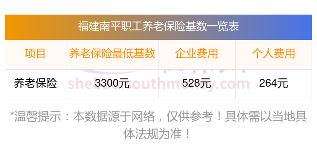 福建南平养老保险缴费基数2023-2024年最新标准(最低)要交多少钱一个月?