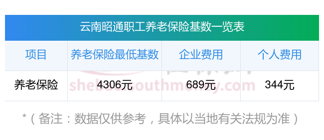 云南昭通养老保险缴费基数2023-2024年最新标准(最低)