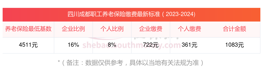 四川成都养老保险缴费基数2023-2024年最新标准(最低)