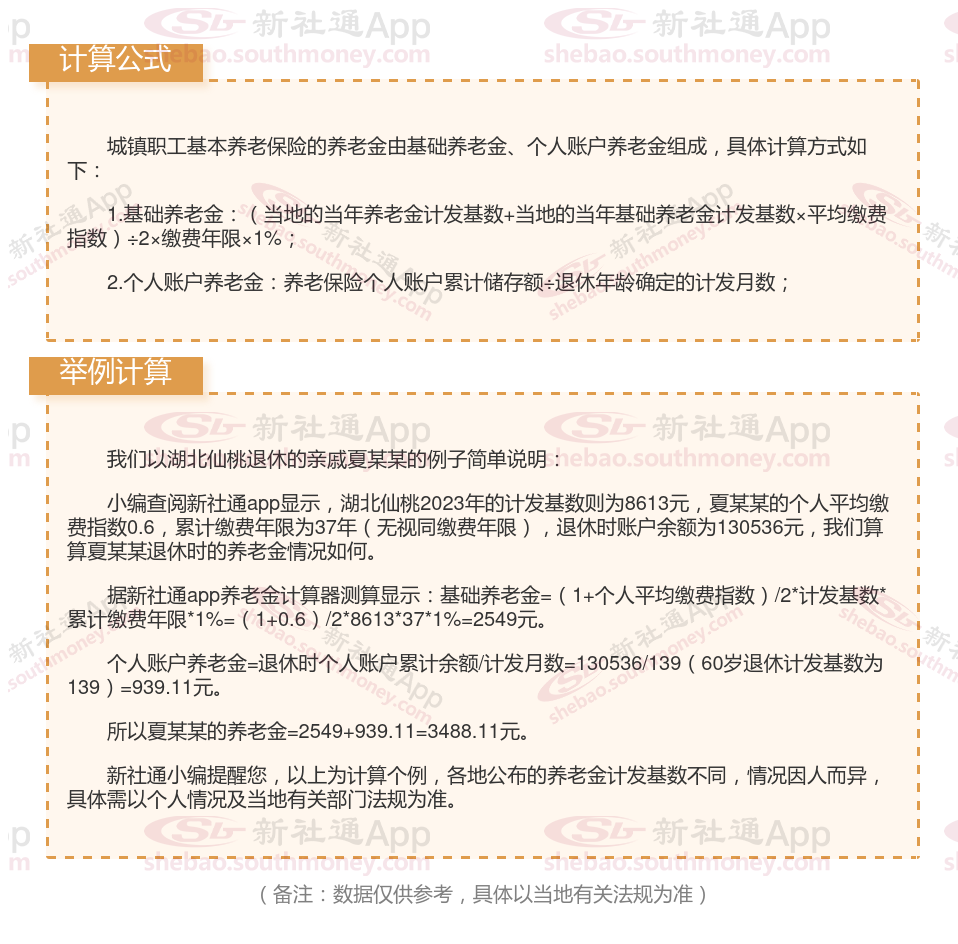 湖北仙桃养老金计算公式2024年计算方法(在线计算器)