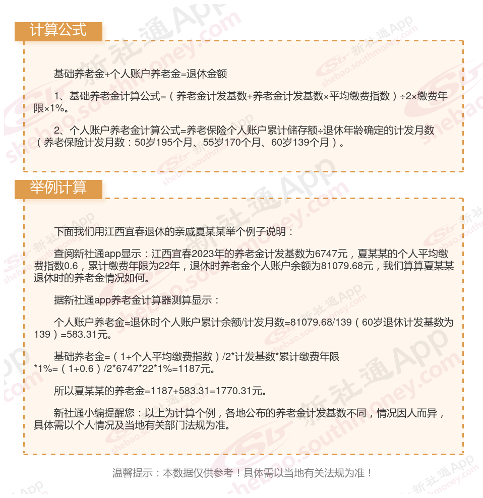 江西宜春社保养老保险交满能领多少钱?(在线计算举例说明)