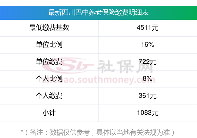 养老保险一个月要交多少钱?四川巴中缴费基数2023-2024年最新标准(最低)