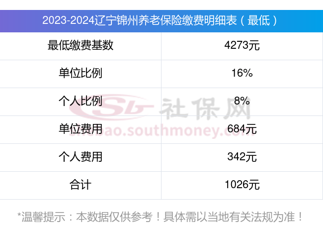 辽宁锦州养老保险缴费基数2023-2024年最新标准(最低)