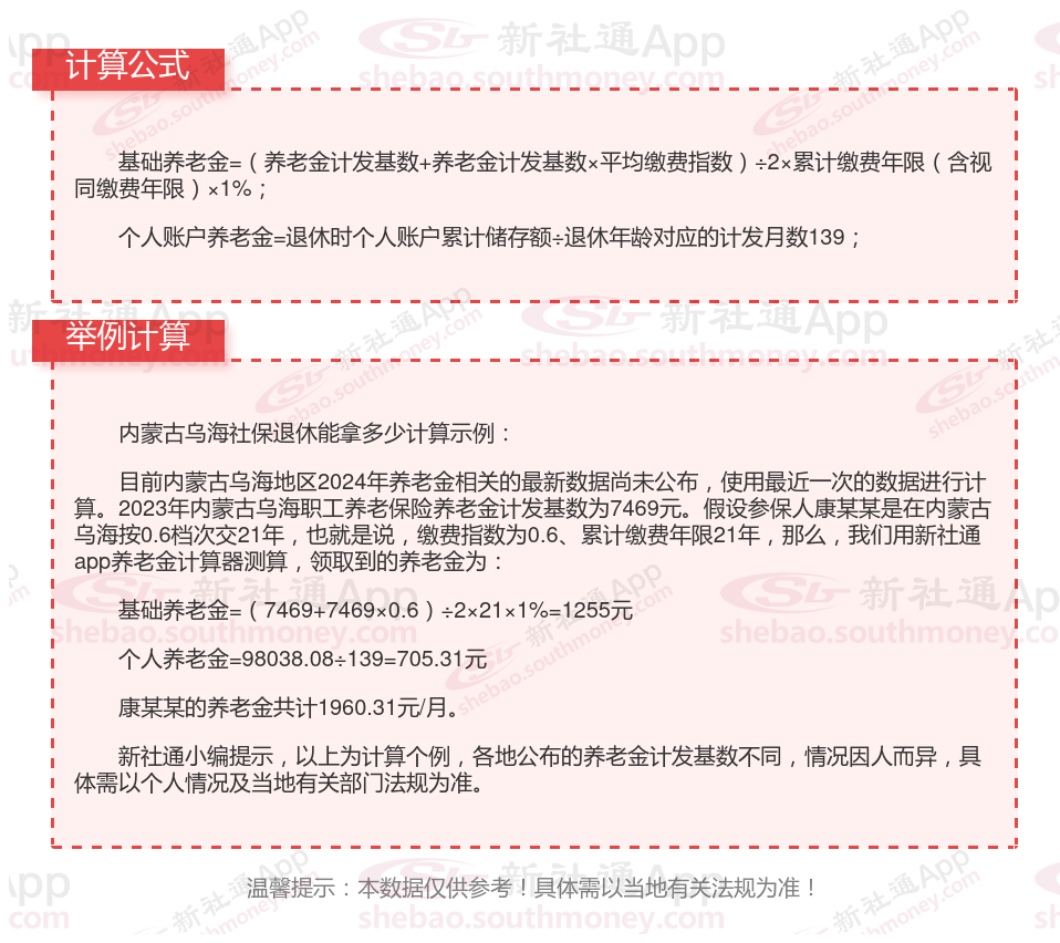 内蒙古乌海养老金计算公式2024年最新计算器 社保退休能领多少钱?