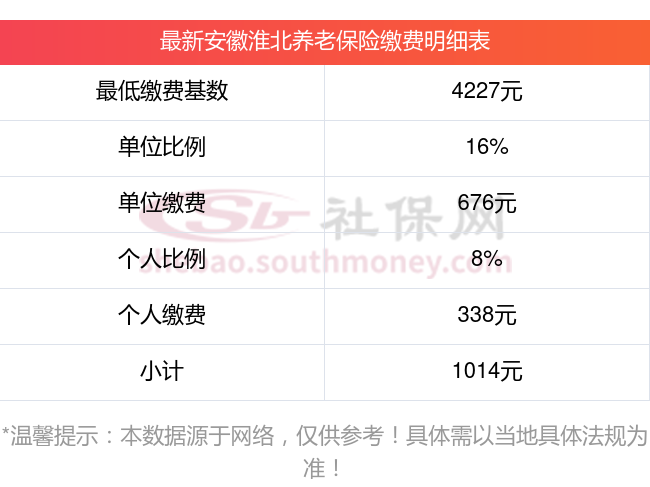 安徽淮北养老保险缴费基数2023-2024年最新标准(最低)