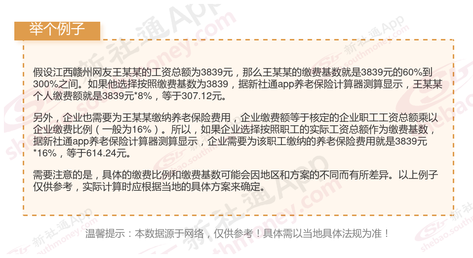 江西赣州养老保险缴费基数2023-2024年最新标准(最低)