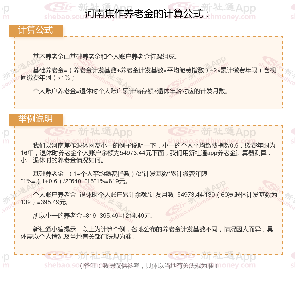 河南焦作养老金计算公式2024年计算方法(在线计算器)