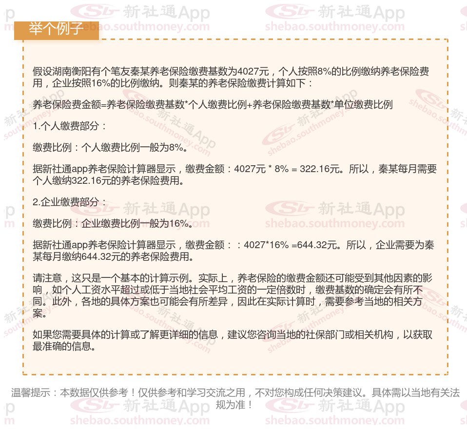 湖南衡阳养老保险缴费基数2023-2024最新标准,一个月要交多少钱?