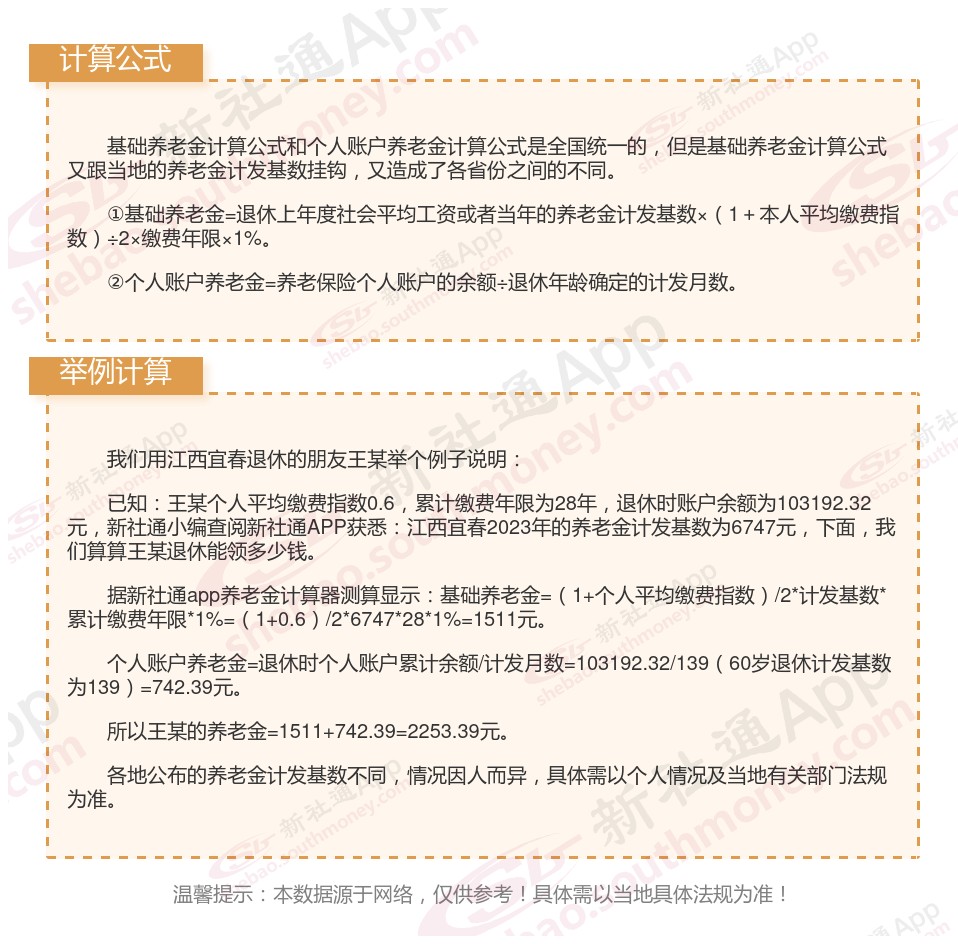江西宜春养老金计算公式2024年计算方法(在线计算器)