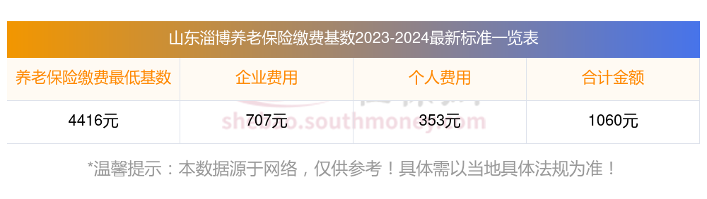 山东淄博养老保险缴费基数2023-2024最新标准