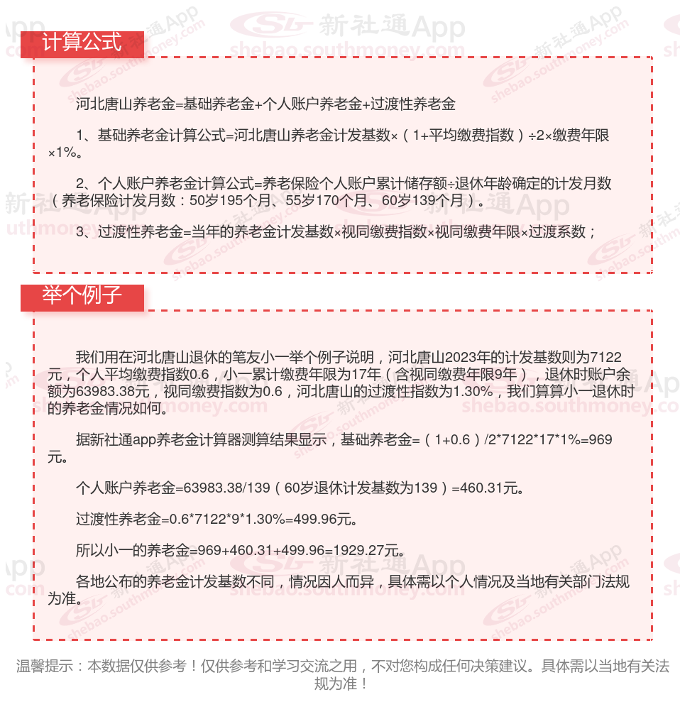 河北唐山养老金计算公式2024年计算方法(在线计算器)