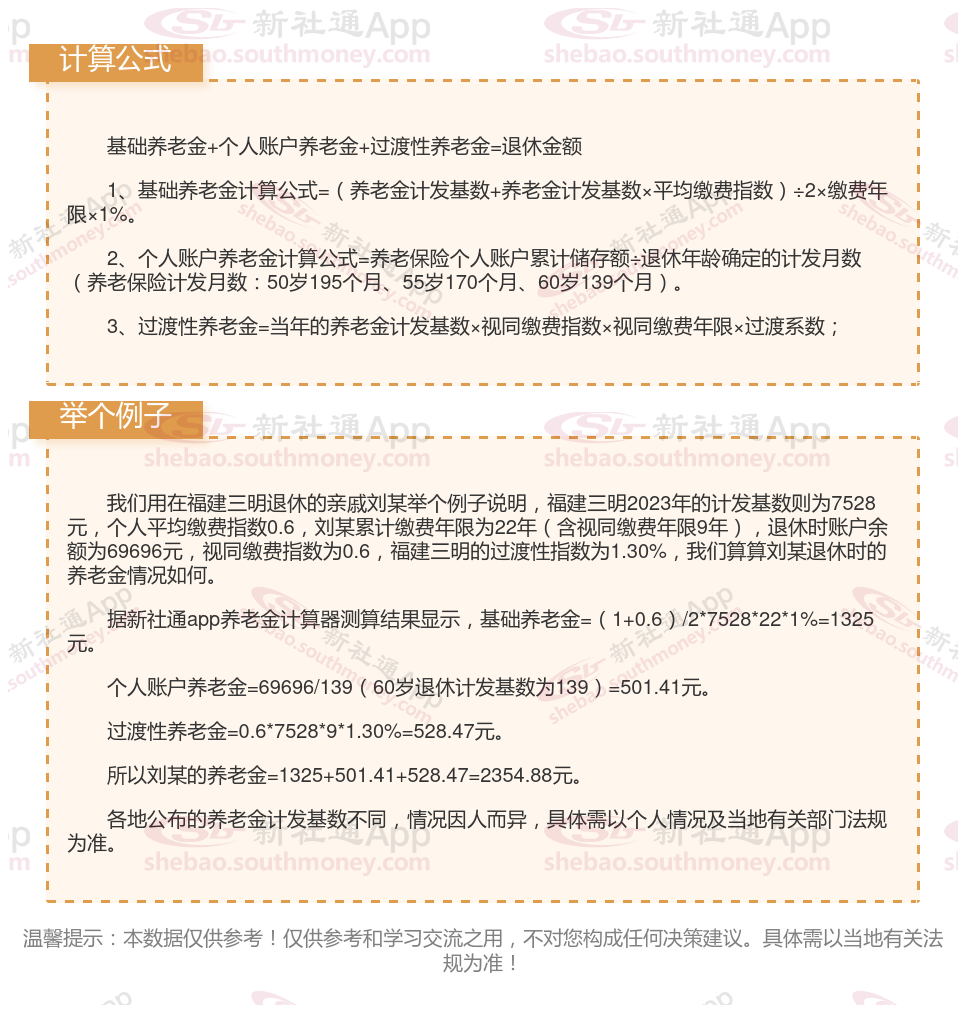 福建三明养老金计算公式2024年计算方法(在线计算器)