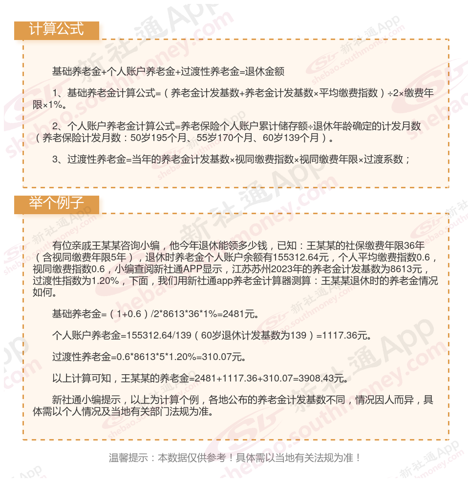 江苏苏州社保退休能领多少钱?(在线计算举例说明)