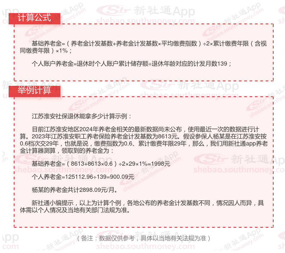 江苏淮安养老保险退休能领多少钱?(在线计算举例说明)