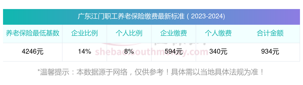 养老保险一个月要交多少钱?广东江门缴费基数2023-2024年最新标准(最低)