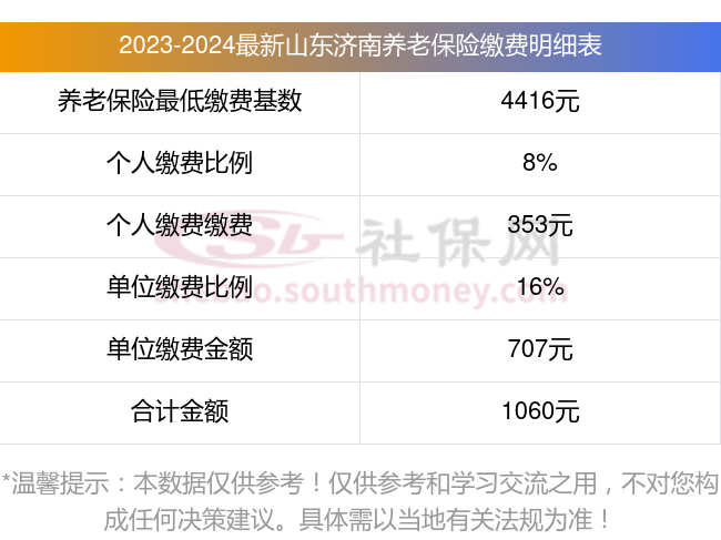 山东济南养老保险缴费基数2023-2024年最新标准(最低)一个月要交多少钱?举例说明