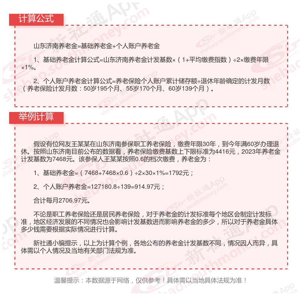 山东济南养老保险退休能领多少钱?(在线计算举例说明)