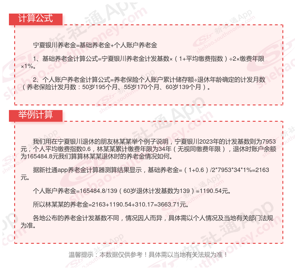 宁夏银川养老金计算公式2024年计算方法(在线计算器)