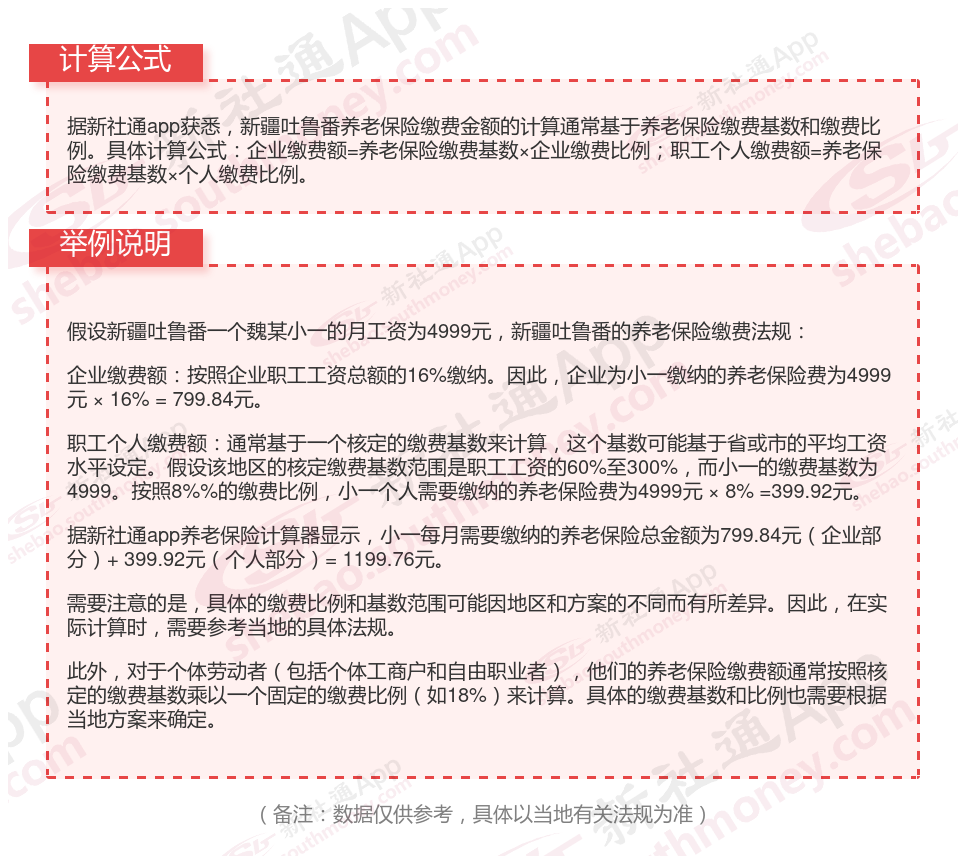 新疆吐鲁番养老金计算公式2024年计算方法(在线计算器)