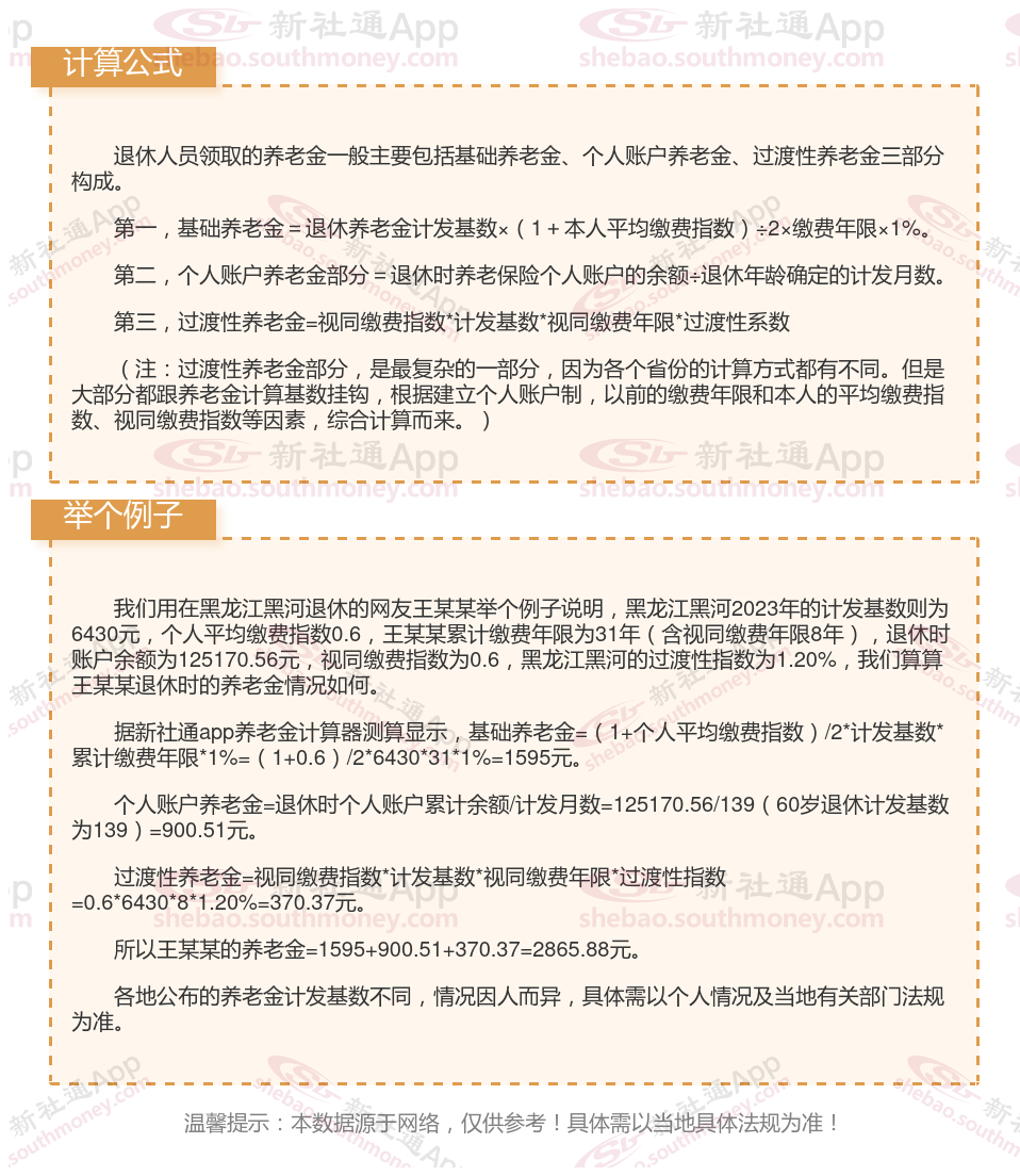 黑龙江黑河养老金计算公式2024年计算方法(在线计算器)