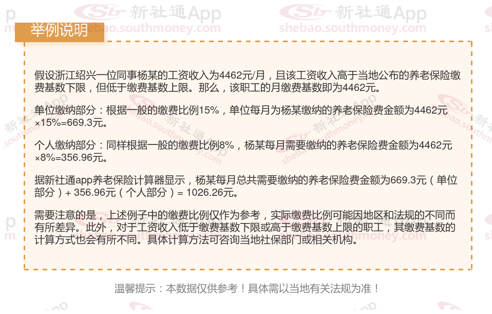 浙江绍兴养老保险缴费基数2023-2024年最新标准(最低)要交多少钱一个月?