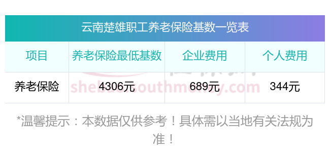 云南楚雄养老保险缴费基数2023-2024年最新标准(最低)要交多少钱一个月?