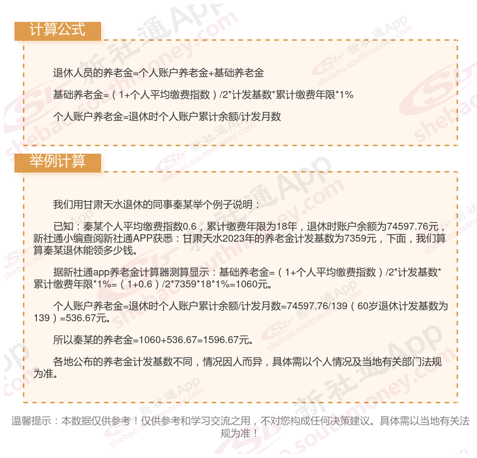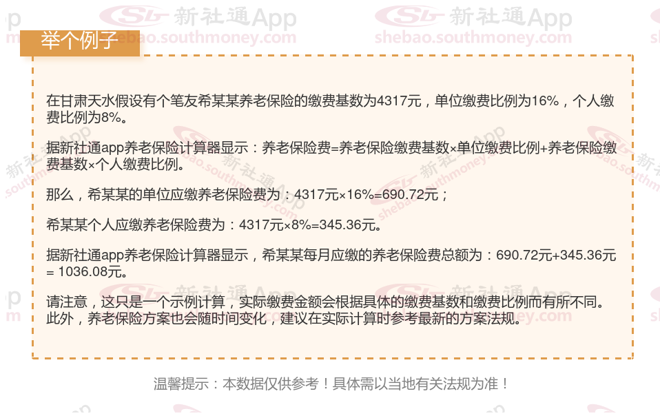 甘肃天水养老金计算公式2024年计算方法(在线计算器)